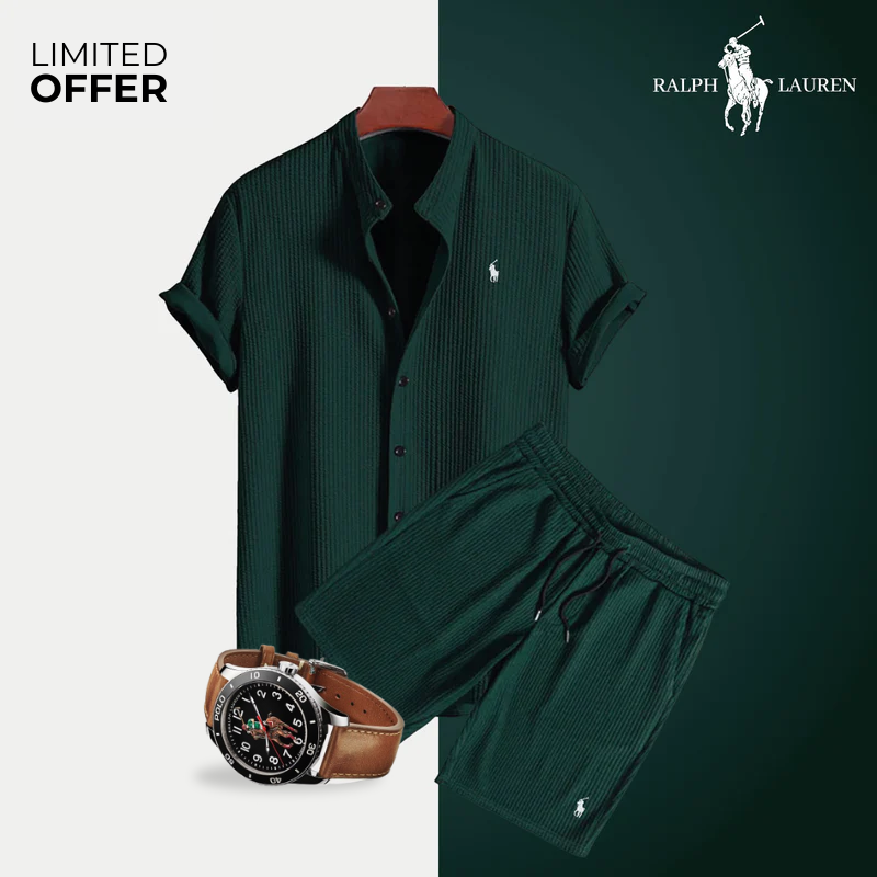 Step Up Your Style Game with the Exclusive R&L Set - Shirt & Shorts + Watch